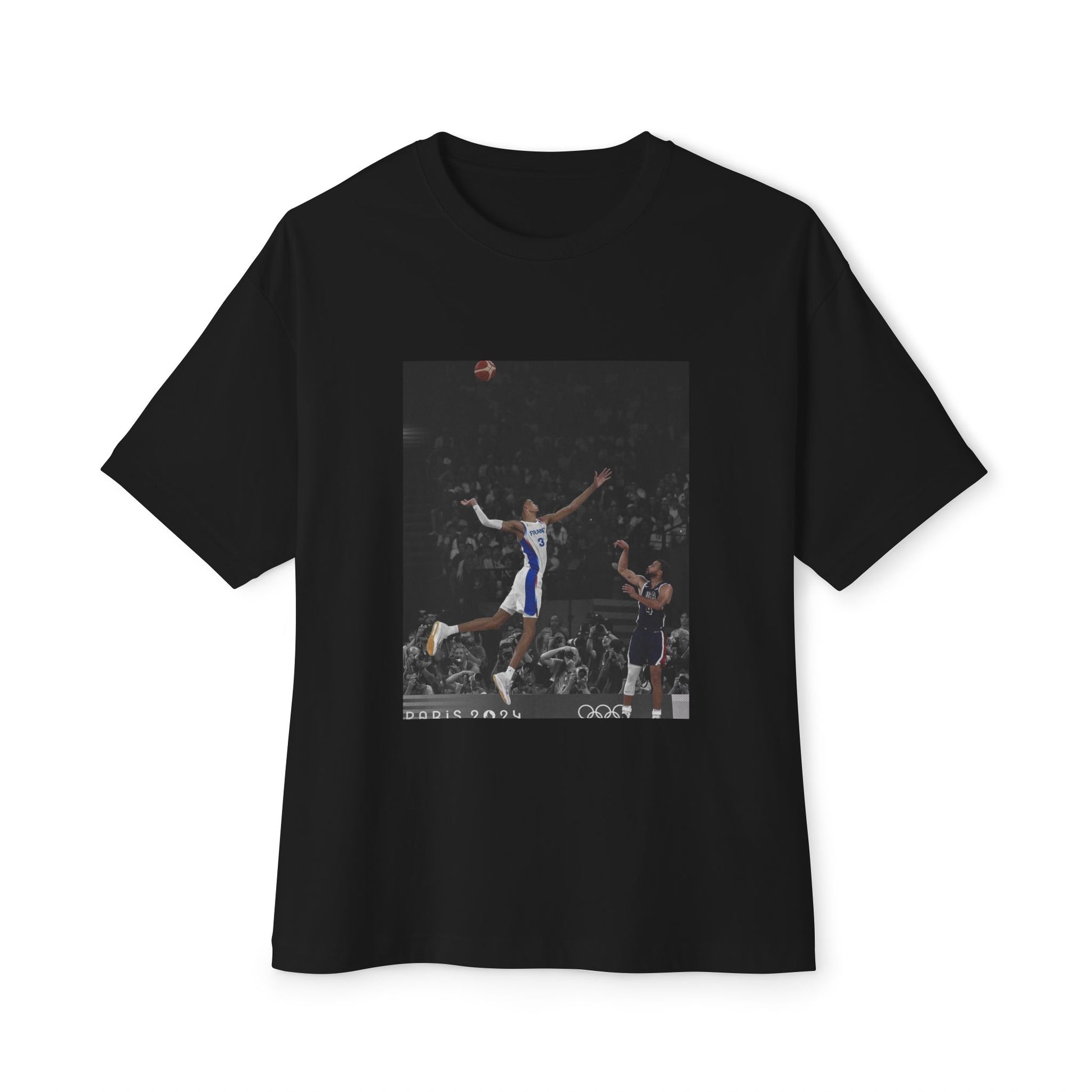 This oversized boxy tee captures a single, breath-stealing moment: Steph Curry releasing a shot as Victor Wembanyama rises to contest it. It reads like a still from a heated game — the arc of the ball, the stretch of a defender, the silence before the net. Wear it when you want to carry that court energy off the hardwood: pickup nights, gym commutes, or when you’re replaying clutch moments with friends. The relaxed, dropped-shoulder silhouette lets you move with ease, whether you’re shooting around or cheering from the stands. Subtle, bold, and a little nostalgic — it speaks to people who live for the details of the game and the small, defining plays that become memories.